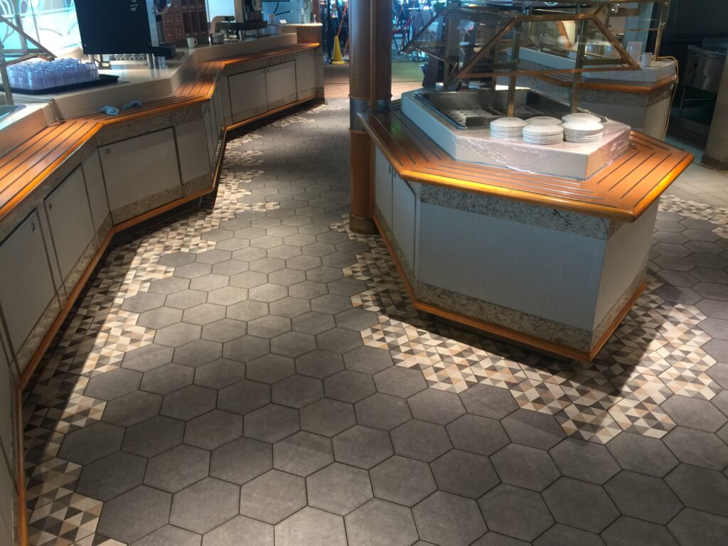 ERS Marine were contracted to tackle a tough task of prolonged ingrained dirt in a high usage passenger servery area on board a cruise ship. Due to the limited down time for these areas, the crew could not clean the area as intended.